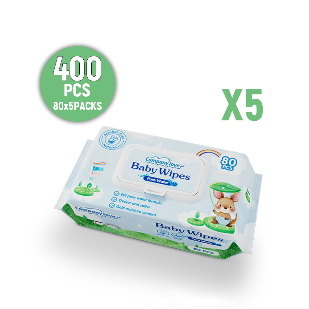 Perusahaan Cinta 400Pcs Non-Alkohol Tanpa Pewangi Aman Untuk Bayi Gratis Lembut Sekali Pakai Tisu Basah Ukuran Perjalanan